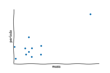 Por ejemplo, si tenemos observaciones de estrellas variables, y graficamos sus masas y sus períodos, quizás veremos uno o dos puntos que están muy lejos del resto del grupo: